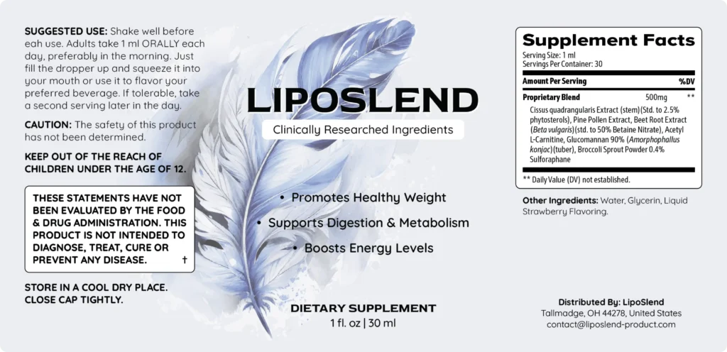 LipoSlend is an innovative dietary supplement designed to support healthy weight loss through a unique blend of natural ingredients and advanced technology. This liquid supplement is formulated to activate the body’s “molecular liposuction” process, helping to reduce body fat effectively and safely. By incorporating LipoSlend into your daily routine, you can experience consistent and sustainable weight loss.