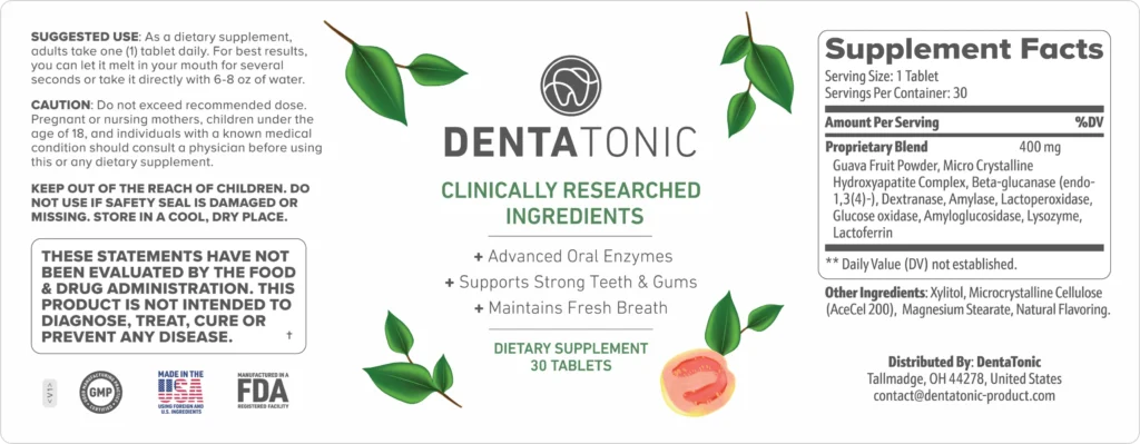 DentaTonic works by restoring the balance of the oral microbiome, promoting a healthy environment in the mouth. The supplement contains a blend of enzymes and probiotics that help combat harmful bacteria, preventing cavities and gum disease. Lactoperoxidase, an enzyme in the formula, plays a crucial role in maintaining oral hygiene by inhibiting the growth of harmful microorganisms.